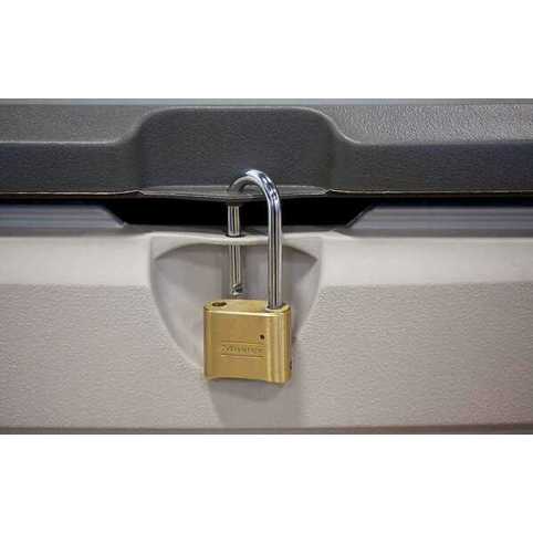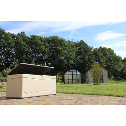 Dank der gasdruckdämpfergestützten Deckelöffnung bleibt der Deckel bequem in einer 90°-Position stehen, was das Befüllen und Entnehmen der Gegenstände erheblich erleichtert. Die Wasserabweisung und die 100%ige UV-Beständigkeit garantieren zudem, dass Ihr Inhalt jederzeit geschützt ist.