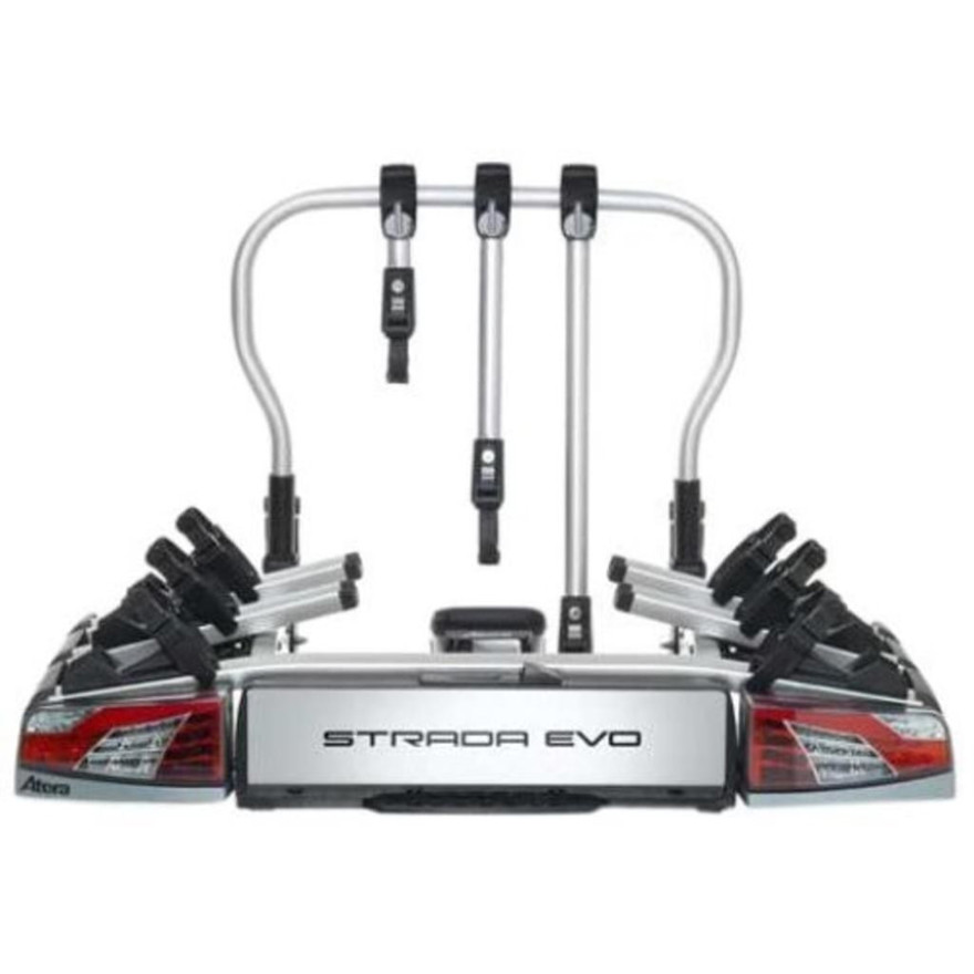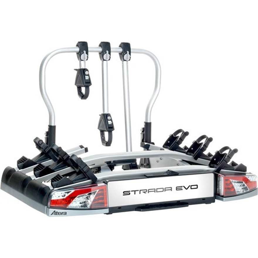 Atera - Strada EVO 3 - Fahrrad-Kupplungsträger Anhängerkupplung, 3 Fahrräder, integrierte Rückleuchte, 19 cm Schienenabstand, sichere Diebstahlsicherung