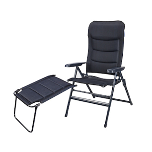 Campart - TORINO Outdoorstuhl mit Fußablage, hochlehner + 7 Positionen verstellbar, extra breit (dunkelblau, klappbar)