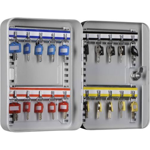 Der Schlüsselkasten SK 20 ZK von Format ist die ideale Lösung für die sichere und ordentliche Aufbewahrung Ihrer Schlüssel. Mit einem eleganten Design und einer äußeren Farbgebung in Lichtgrau (RAL 7035) fügt sich dieser funktionale Schlüsselschrank harmonisch in jede Umgebung ein. Aus robustem, pulverbeschichtetem Stahlblech gefertigt, sorgt er für Stabilität und Langlebigkeit.