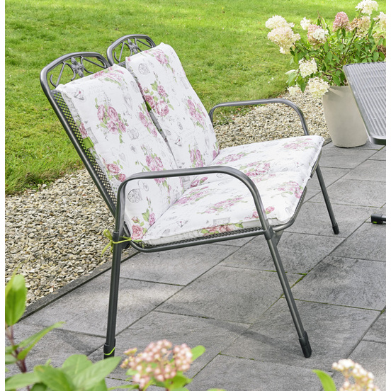 Entdecken Sie die 2-Sitzer Bank Savoy von MWH in einem eleganten eisengrauen Farbton. Diese stilvolle Gartenbank ist nicht nur ein bequemer Sitzplatz für zwei Personen, sondern auch ein Hingucker in Ihrem Außenbereich. Das geschmackvolle florale Dekorelement im Rückenabschluss und das luftig gestaltete Streckmetall verleihen der Bank einen charmanten und modernen Look.