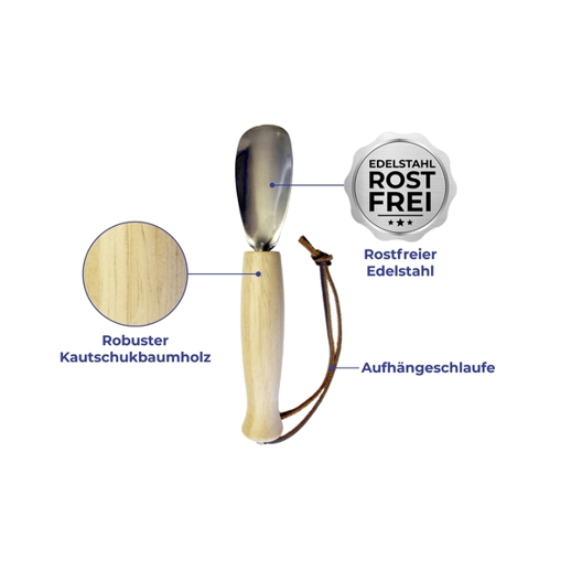 Besondere Eigenschaften: Farbe: Silber glänzend - Nettogewicht: 110 g - Material: Edelstahl rostfrei und Holz