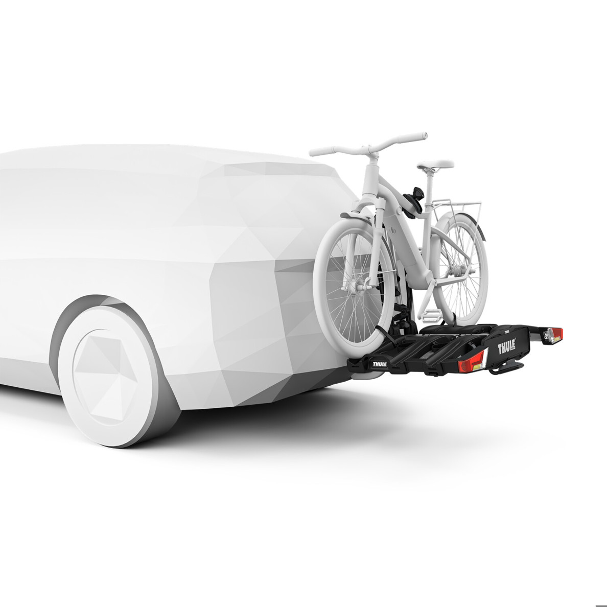 Ausgestattet mit robusten Felgenhaltebändern und Rahmenhaltern, sorgt der EasyFold XT F 3 für einen sicheren Transport Ihrer Räder. Die integrierte Diebstahlsicherung garantiert sowohl den Schutz des Trägers als auch der Fahrräder. Zudem ist er mit einem 13-poligen Steckeranschluss und einem praktischen Kennzeichenhalter versehen. Dank des cleveren Abklappmechanismus, ermöglicht der Träger den leichten Zugang zum Kofferraum auch bei montierten Fahrrädern.
