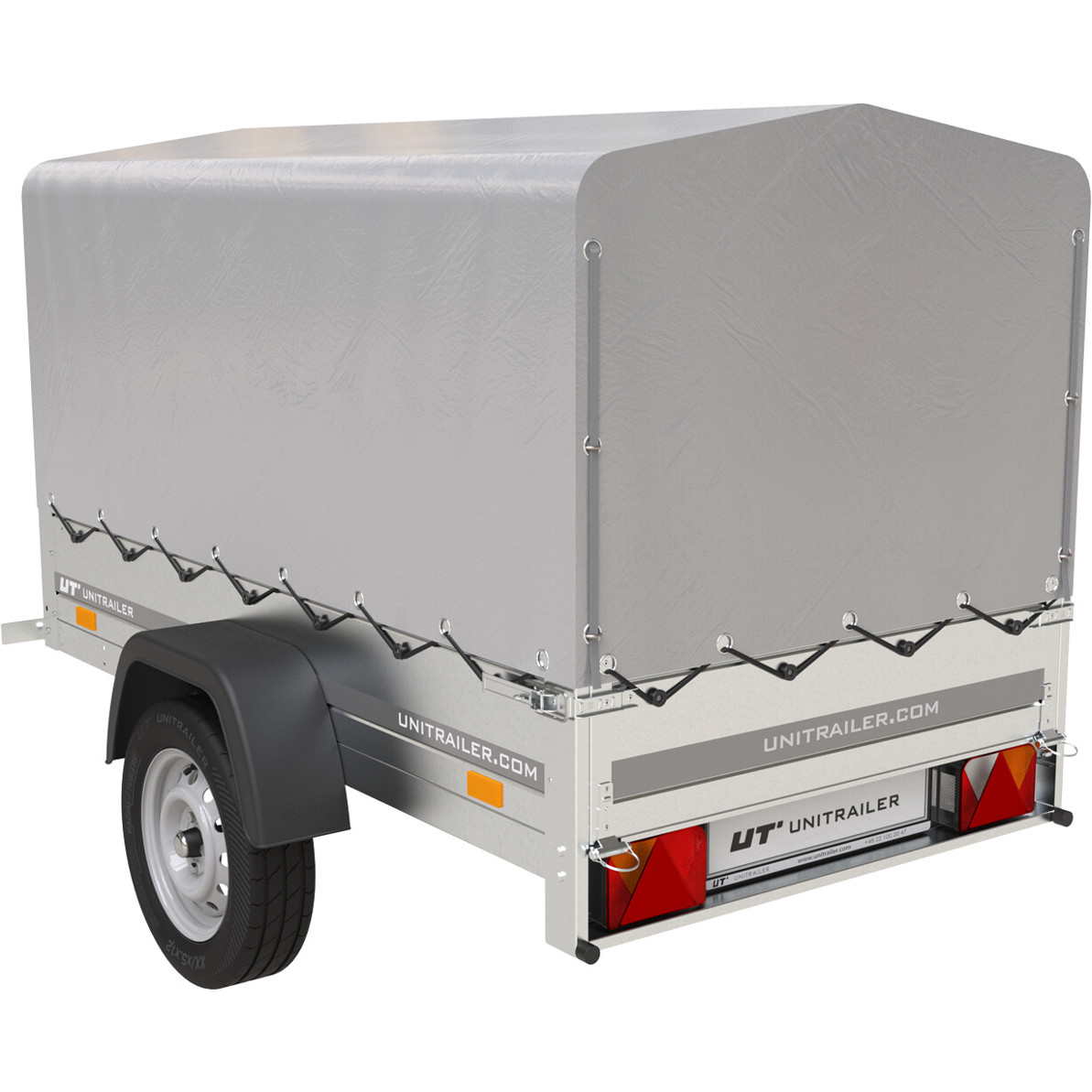 Unitrailer - UT004178 Garden Trailer 200 Kipp (Einachser, 750kg, V-Deichsel, 13 Zoll, Silber, Stahlblech, Siebdruckbodenplatte, 633kg Nutzlast, 116kg Leergewicht, 200x106cm, 7-Polig, Planenanhänger)