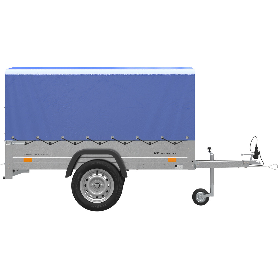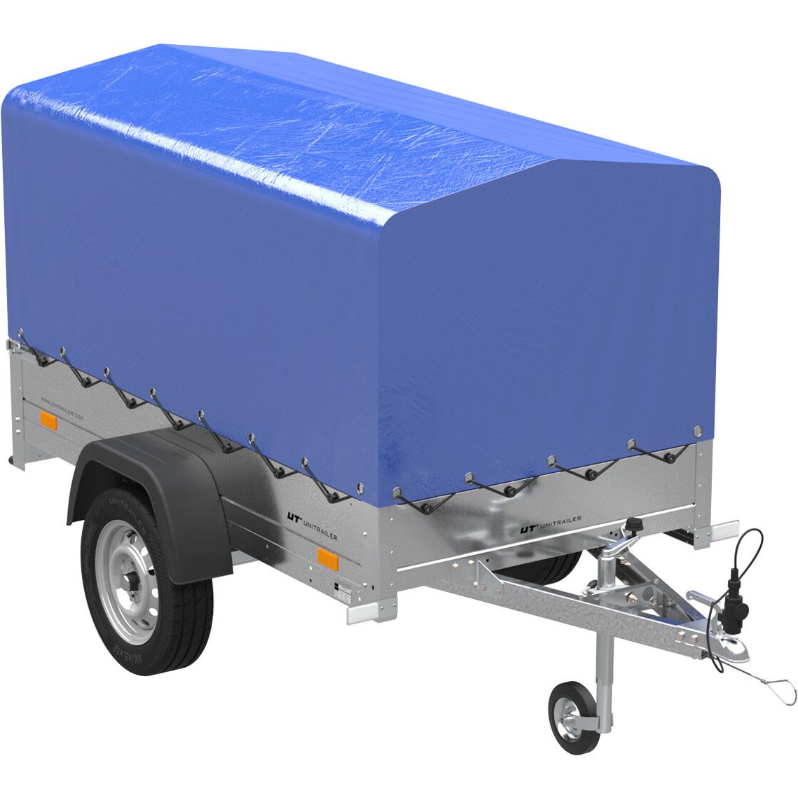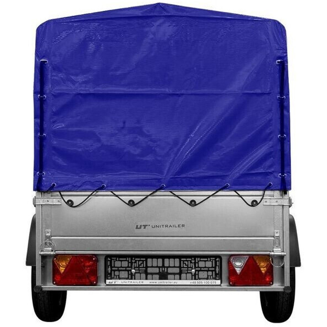 Mit seinem ansprechenden blauen Design passt der Anhänger nicht nur optisch zu Ihrem Fahrzeug, sondern hat auch alle notwendigen Funktionen, um Ihre Transportbedürfnisse effizient zu erfüllen. Der 7-polige Steckeranschluss gewährleistet zudem eine einfache Verbindung zu Ihrem Fahrzeug.