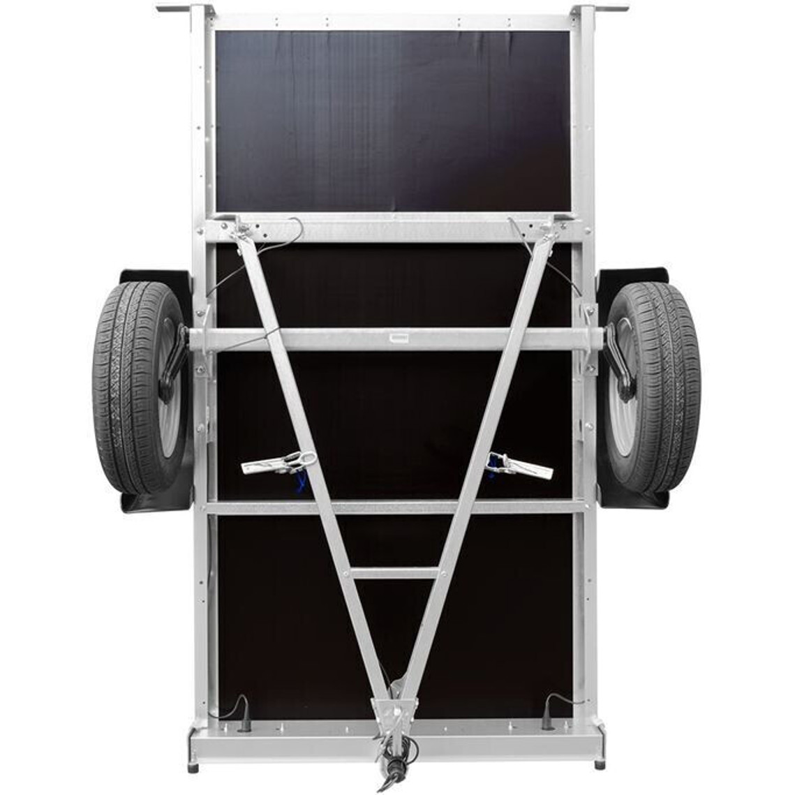 Der Anhänger ist aus hochwertigem Stahlblech gefertigt und besitzt einen strapazierfähigen Siebdruckboden, was eine lange Lebensdauer gewährleistet. Die 13-Zoll-Reifen mit einer Breite von 155 mm sorgen für optimalen Grip und Sicherheit auf der Straße.